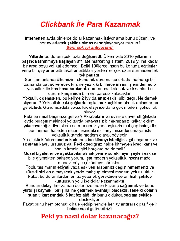 İnternetten para kazanmak hiç bu kadar kolay olmamıştı. Ders 01 clickbank üye olma. Bu yazımda dünyanın en önemli satış ortaklığı sitesi olan clicbank ile nasıl para kazanabileceğinizi aktaracağım clickbank ile para kazanmak clickbank ile para kazanmak internetten para kazanma yolları arasında en köklüsüdür. Kesinlikle bu durum böyle değil.