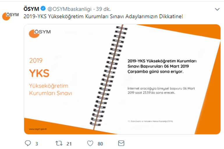 2019 yks ye başvuran adaylar seçmiş oldukları oturumlara bağlı olarak sınav ücretini kılavuzun son sayfasında belirtilen bankalardan herhangi birine veya ösym nin internet sayfasında e i̇şlemler de yer alan ödemeler alanından kredi kartı banka kartı ile süresi içinde yatıracaklardır. Yks son başvuru tarihi ösym tarafından bugün olarak belirlendi. 2020 ösym üniversite sınavı para yatırma yks başvuru tarihleri ne zaman son.